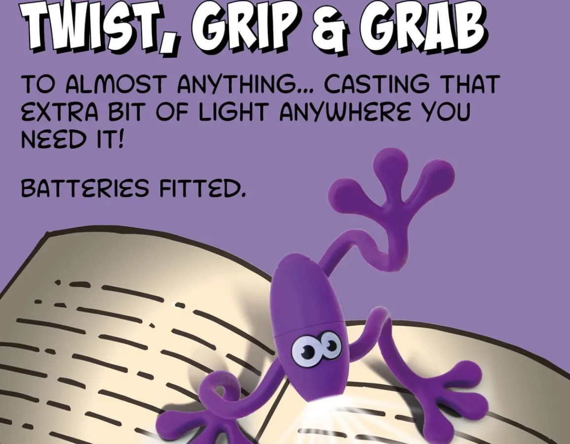 The flexible, grippy coated legs are multi-positionable and obligingly bendy, wrapping round, under and through virtually any horizontal or vertical surface. Has three tactile 9cm long legs and very entertaining to pose in various fun shapes. Comes with batteries fitted, with a 360 degree head rotation to shine the bright light just where you need it – to boldly glow where other lights can’t!