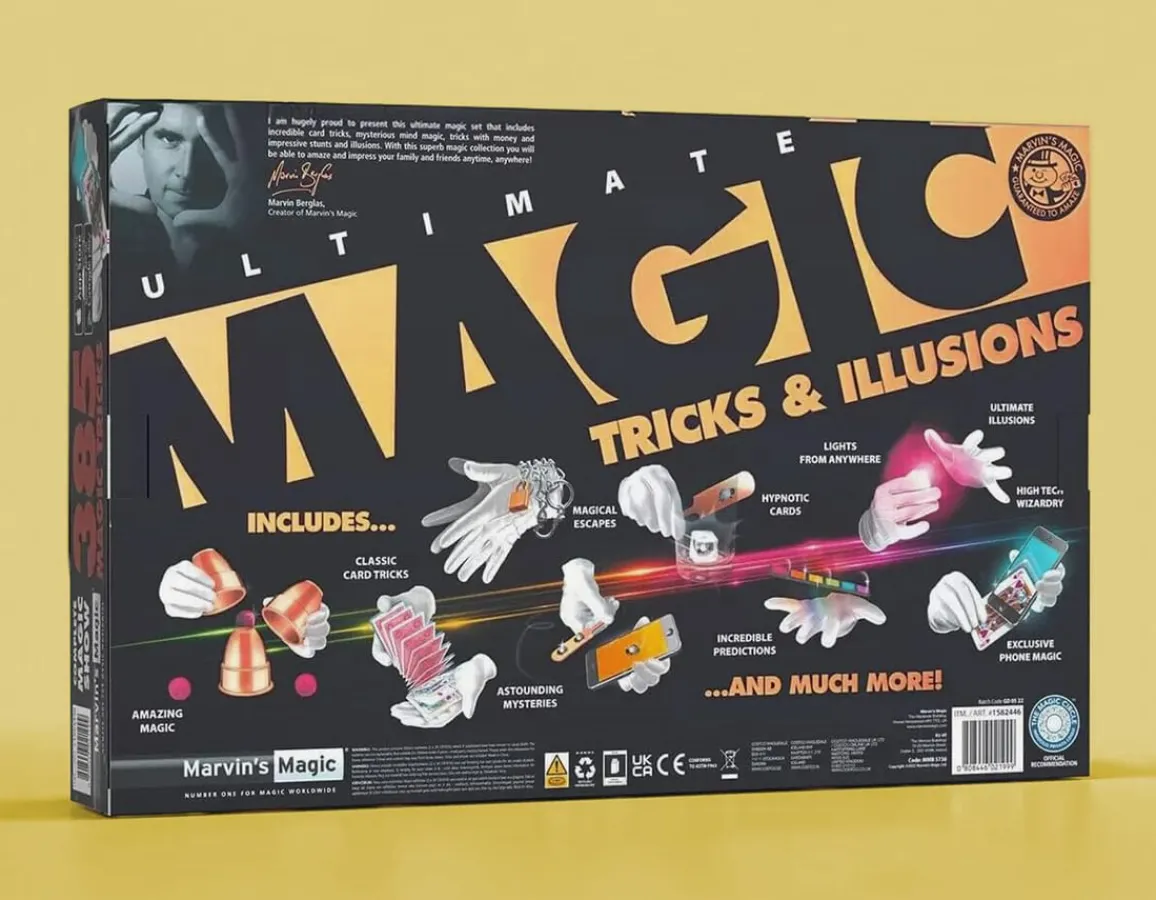This amazing selection of tricks and illusions can be mastered in minutes. The perfect gift for children looking to dazzle their friends! Learn how to escape from the famous Houdini Chains, watch a key move by itself and discover which colour has been chosen by a spectator. This magical selection of 385 incredible tricks includes Magic Cards, Cups and Balls, Astounding Mind Reading Canisters and much, much more. Now that’s magic!